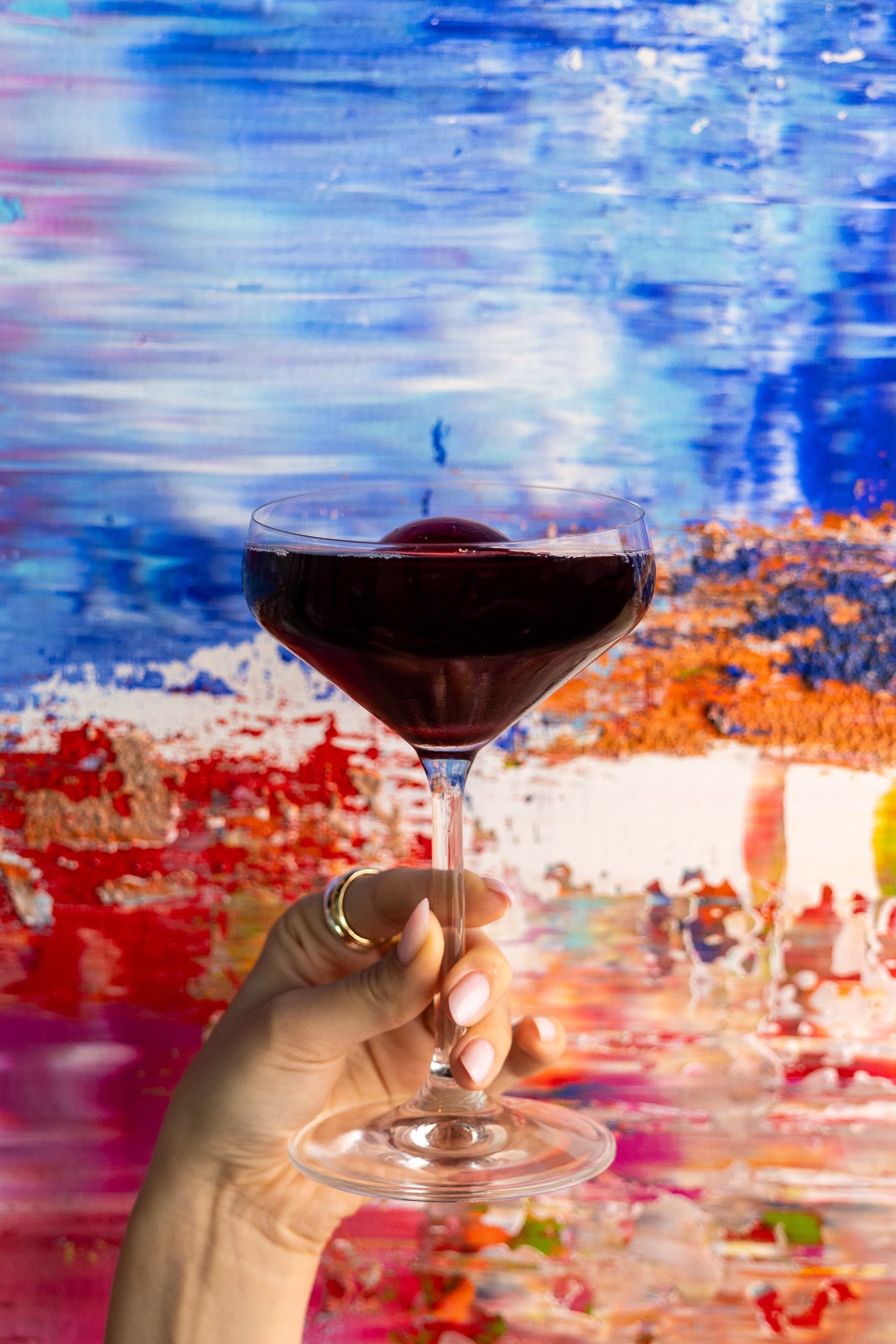 The Menu of Colors is the expression of LuminAir’s bold approach to mixology, where innovation, flavor, and artistic vision converge. Each signature cocktail draws inspiration from the captivating phenomenon of light refraction. Just as white light reveals a spectrum of colors through a prism, every cocktail reflects a distinct hue found in the sky. The concept comes to life through a unique collaboration with Dutch artist Lynn Spoor, renowned for her dynamic brushwork and powerful compositions. Lynn created a single, striking painting that captures the spirit of the entire menu. Her expressive style mirrors the energy, complexity, and creativity behind each drink.
